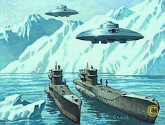 The Germans, having had two years to get it together after the war, started making fly-overs over the United States in their disks, which had by then achieved a remarkable degree of development. This prompted the United States to undertake plans to ascertain both the exact location of the German base at the Pole and their technical capabilities. In 1947, Operation High-jump was conducted at the pole in an attempt to locate the Germans. It was a failure. The Germans used their technology to thwart the efforts of the United States. It wasn't until 1958 during the International Geophysical Year that another major attempt to work on the Germans was made. Various polar expeditions that occurred in between 1947 and 1958 had intelligence as part of their design, and also seemed to evoke activity from other forces and entities from inside the Earth. There also seems to be some evidence that the Germans made contact with alien forces from inside the planet during the stint at the pole.