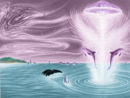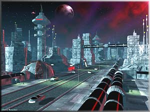 endel av de sivilisasjoner som de har kontakt med ligger årtusender foran jorden i normal utvikling. Dette bildet er et tenkt bysamfunn "på en fjern planet" men ut fra opplysninger fra særlig Semjase-kontaktene fra -75 - som var fysiske møter der en masse informasjoner ble gitt - kom det fram at mange av planetene i pleiadene var så lavbefolket at de slapp å hope seg sammen i slike bysamfunn. F.eks. hadde hele planeten ERRA som går i bane rundt en av pleiadestjernene (stjernen Taygeta) - riktignok i en annen tidsdimensjon og et noe høyere frekvensplan - kun 500 millioner innbyggere som da bodde i landsbysamfunn - eller nærmest grisgrente landsbygder. Slik ville DE helst leve. Erra er størrelsesmessig omtr. som jorden.