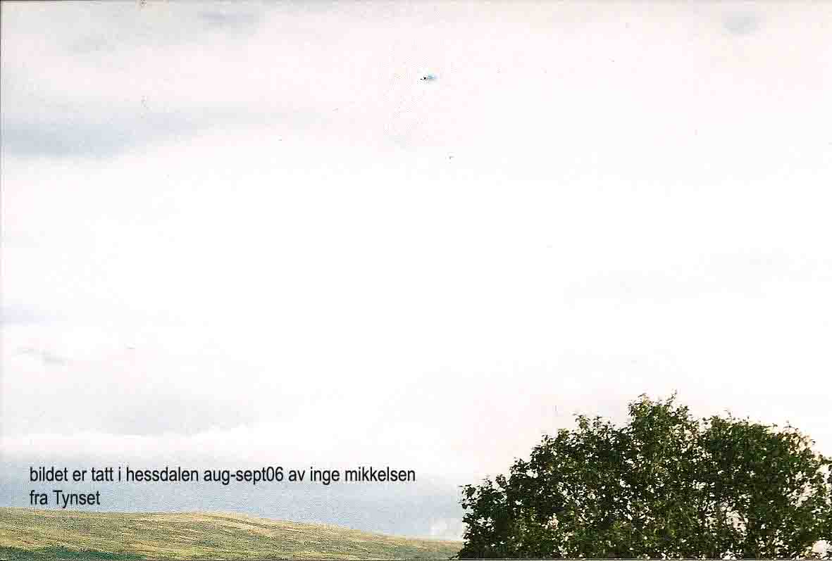 It is to remark that this region is not so far from the more famous ufo-valley HESSDALEN, where ufo's have been seen close and more far for more than half a century. And past the mountains to the west in the direction of Oppdal a man has recently taken many shootings of light-phenomena that reminds of the pictures from HESSDALEN (picture most down below)