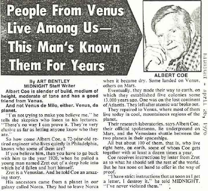 From Lester Rosas , 1976. "Visits from Venus." Other World Life Review (October +December)
