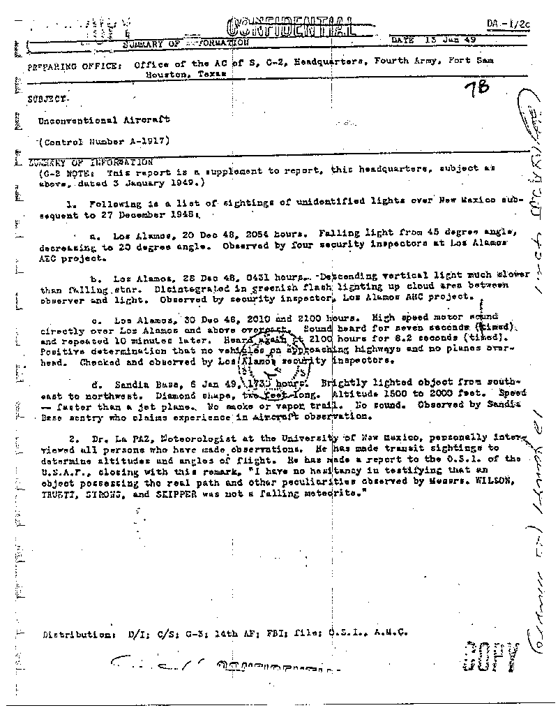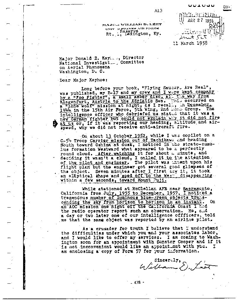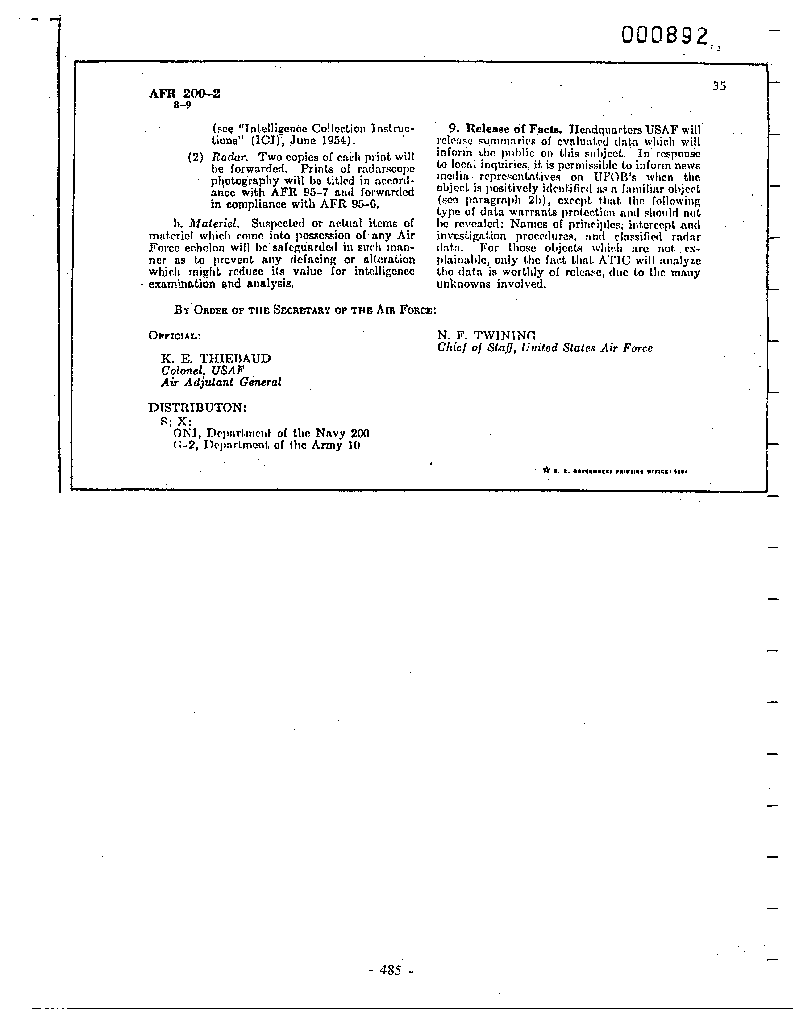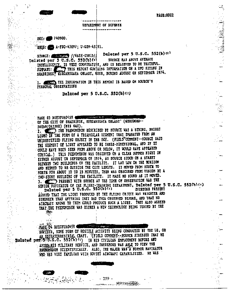 *9.0 APPENDIX AI. UNITED STATES GOVERNMENT DOCUMENTS RELATED TO UFOs
