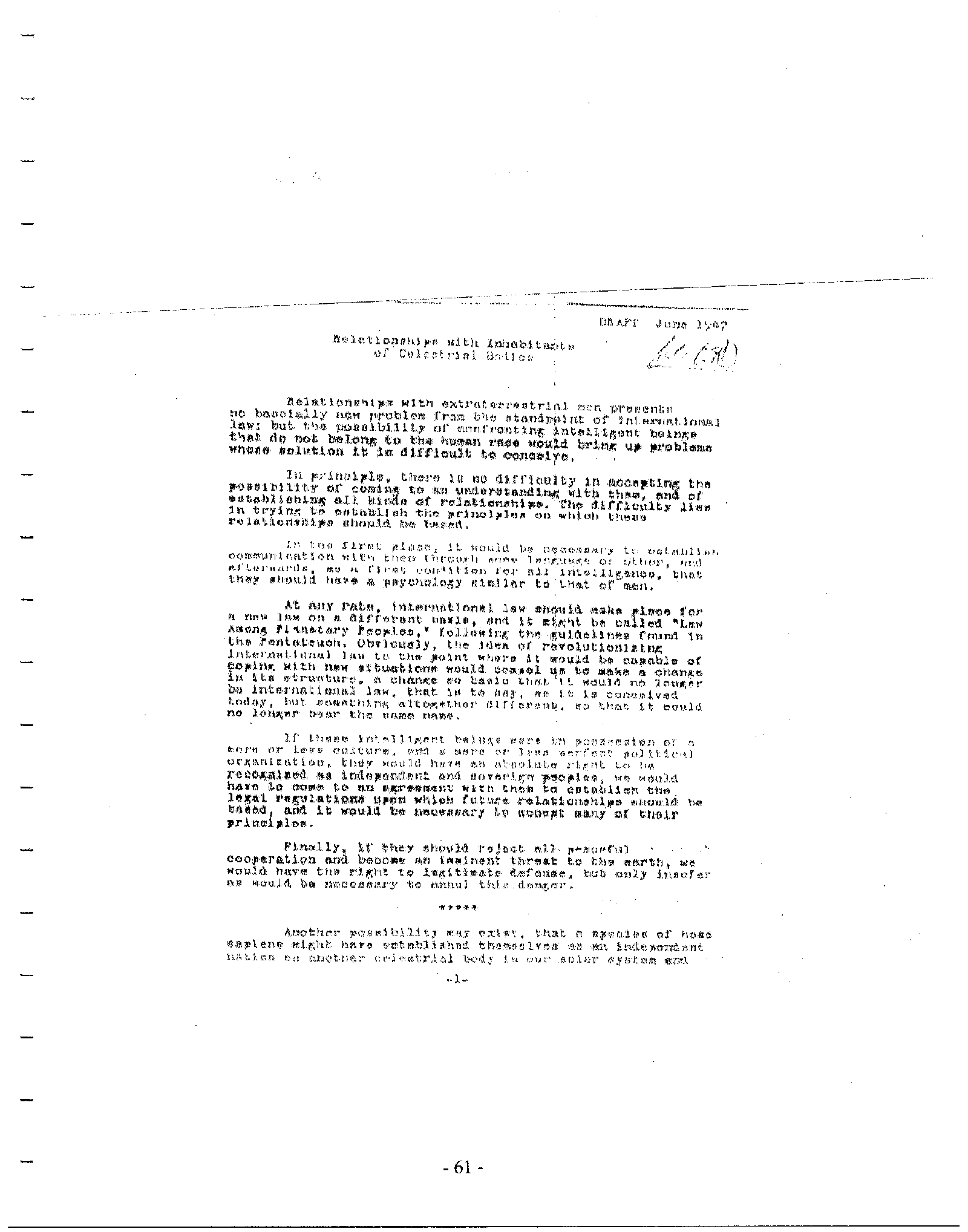 A few years ago I was discussing this subject with the former Chairman of the Senate Foreign Relations Committee, Senator Claiborne Pell. He explained to me that he had been in Congress since the 1950s but had never been briefed on this subject. I told him that the nature of these black projects has resulted in most of our leaders being left out of any decision making on this subject, and what a shame this is. I said, "Senator Pell, all that time you were Chairman of Foreign Relations, you were deprived of the opportunity to deal with the ultimate foreign relations challenge…" and I pointed to the stars above our heads. He said, " You know Dr. Greer, I am afraid that you are right…"