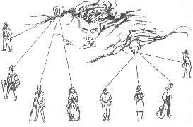 the overself (or can we also call it groupsoul - as the theosophy learns? R.Ø.) which through impulses controls its "puppets" - as in a puppet-theatre. But remember that this overself is YOURSELF - exactly your feeling of the "I - IDENTITY". But because we are only 1/10 consciousness in our normal state - we can not overview the identity of our real SELF.