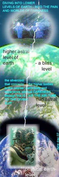picture 1 is the girl on the physical plane - - where the astral and the mental body is confined in the coarse(-physical-) body. But for the sake of the overview - the bodies are drawn beside each other. The creature in the background symbolizes the precence of spititual beeings that helps in the hidden dimensions. physical plane (for example a frequenzy of xx terra-Hz)