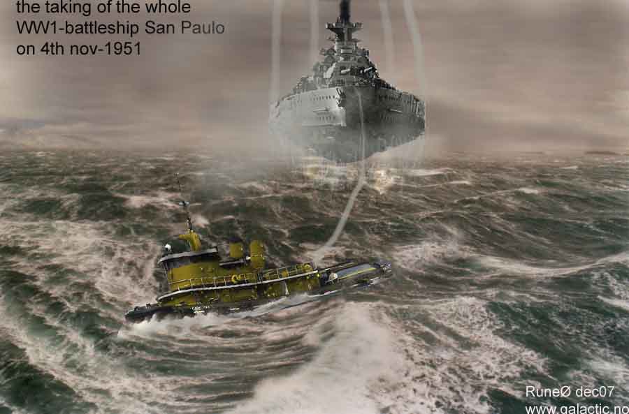 nov.1951- the 2 tugboats had no problems -but the big ww1 warship suddenly disappeared!!