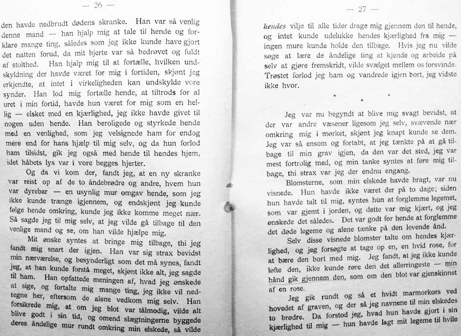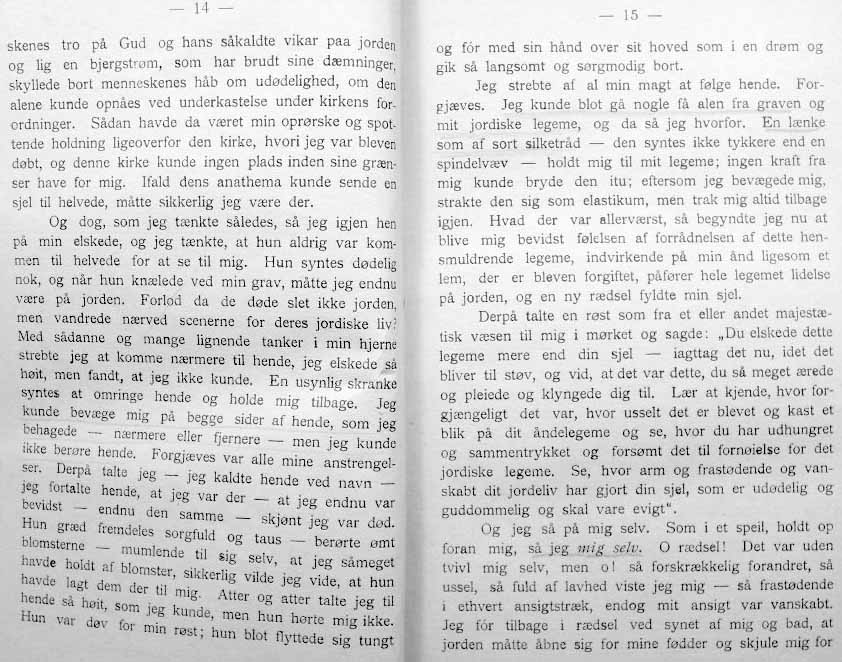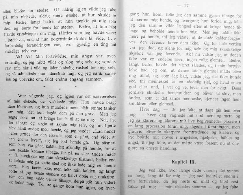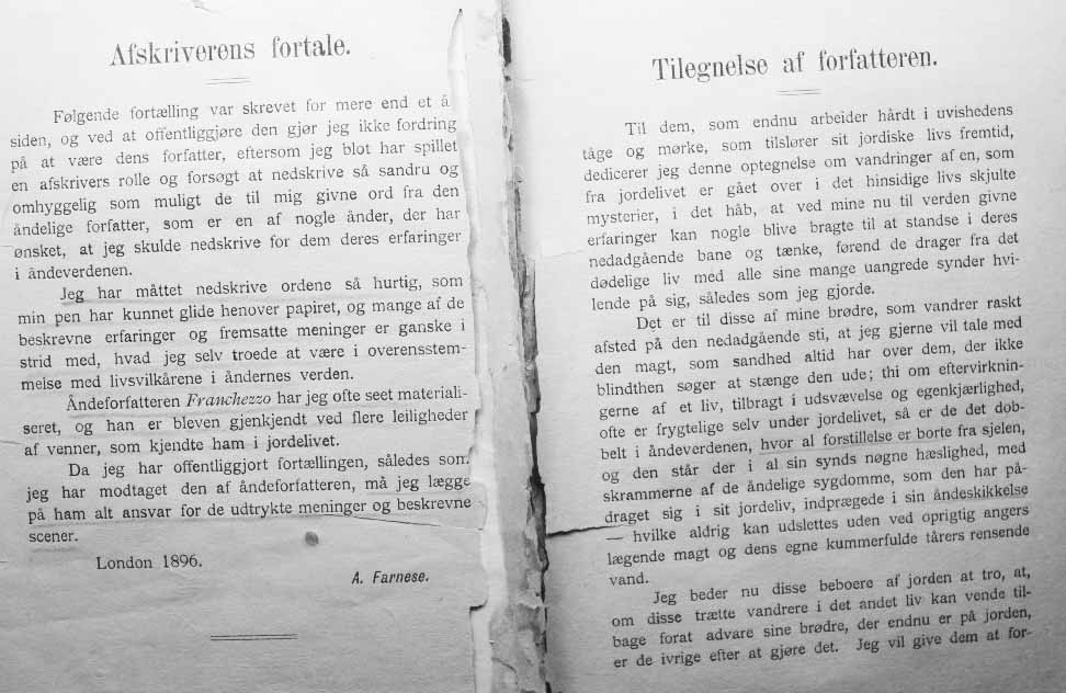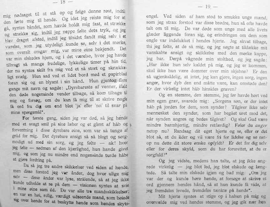 EN VANDRER I ÅNDEVERDENERNE - er oversatt og utgitt av cand. jur. Bernt Torstenson og muligvis brukte den danske oversetter av denne under, nettopp Torstensons oversettelse som grunnlag- da det jo er ganske minimalt som skiller de to språk, slik de var for hundre år siden.