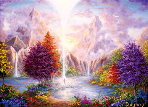 Overgangen fra en lavere sfæres legeme til en høyere sfæres, skjer som oftest under dyp søvn, som har meget til felles med den søvn som inntrer når ånden forlater det jordiske legeme. Etter hvert som en ånd blir mer opphøyd og mer eterisk, ledsages forandringen av en større bevissthetsgrad. Men når det skjer en overgang fra en høy sfære til en annen, er det som om man skifter kledning og får en litt finere sådan, enn den man kasserte. Slik går ånden bestandig fremad, og for hver gang den skifter oppholdssted, skifter den også til en kledning, som blir finere og finere, jo høyere ånden stiger, liksom den i tilsvarende grad løsriver seg mer og mer fra alt som hører jorden til - inntil den overskrider sfærene rundt om vår jord og lander på ”solsystemets sfærers’ kyst”, som da stråler den ankomne i møte med sin blendende skjønnhet og prakt.