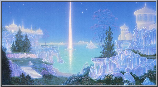Mitt reise følge som jeg ennå ikke direkte fysisk hadde sett ville ta meg med til et bestemt sted der det var noen som ventet oss. Nå kunne jeg tydelig se dette stedet, og det var gigantisk og bygget som et slags palass av de samme "levende gjennomsiktige krystaller". Vi stanset foran dette palasset og der fikk jeg se et "vesen". Dette "vesenet" var en mann som vi fysiske mennesker nærmest kan beskrive det som. Han var bortimot et par meter høy med gyllent/hvitt langt hår og ikledd en slags hvit kappe.