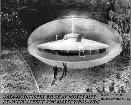 It wasn't just women however, who had erotic adventures with ufonauts. Eugene Browne, of Antrim, Northern Ireland, had a surprising adventure to relate. In the autumn of 1967 he wrote to Flying Saucer Review claiming that the previous 17th July he was walking in a wood near his house when he saw a dull blue-grey dish-like object with a rough and pitted outer surface, hovering just above the ground. From an opening in the centre two human shaped beings, dressed in silvery suits, floated to the ground and walked into the woods. Shortly afterwards they returned and floated back up again. [5]