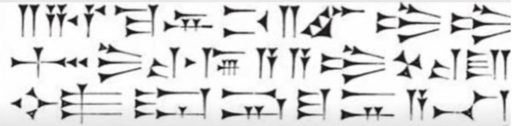 That's what I was telling you, long lines of different angles, clearly with a point and a thick part. You have to understand that what they used to write with were their own nails and from there they evolved. Although they still use them for manuscript sometimes. That last image looks like Urmah. That's how the writing is, long and pointed and at angles.